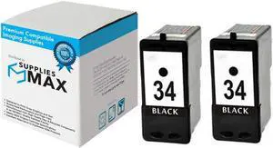 SuppliesMAX Remanufactured Replacement for Lexmark P4350/P6250/P6350/P915/X2500/X3350/X4550/X5250/X5450/X7300/X7350/X8350/Z815 Black High Yield Inkjet (2/PK-475 Page Yield) (NO. 34) (18C0034_2PK)