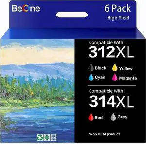 BeOne 312XL 314XL Ink Cartridges Replacement for 312XL 314XL Ink Cartridges Work with Expression Photo XP-15000 XP-8500 XP-8600 Printer(6 Pack,1Black,1 Cyan,1 Magenta,1 Yellow,1 Red,1 Gray)