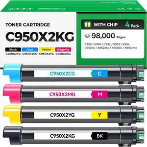 C950X2KG C950X2CG C950X2MG C950X2YG Toner Cartridge Set 4-Pack Replacement Compatible with Lexmark C950 X950 C952 X952 X954 C950de X952dte X950de X954dhe Laser Printer Ink Black Cyan Magenta Yellow
