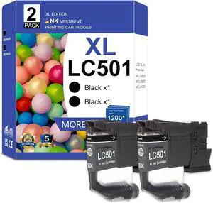 LC501XL Ink Cartridges Replacement for Brother LC501 LC501XL Black Ink LC501BK Cartridges Work for MFC-J1260DW MFC-J1360DW MFC-J1410DW Printers Inks(2BK)