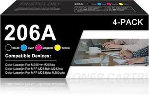 206A Toner Cartridges 4 Pack High Yield Replacement for HP206A 206X HP 206A Toner for Color Laser Pro MFP M283 M283fdw M283cdw M255 M255dw M255nw Printer Toners(BKCMY)