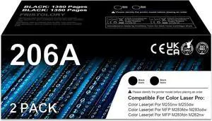 206A Black Toner Cartridges 2-Pack Replacement for HP 206A W2110A 206X W2110X Toner Works with Color Laser Pro MFP M283 M283fdw M283cdw M255 M255dw M255nw Printer Toners(2BK)