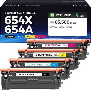 654X 654A Toner Cartridge 4-Pack Replacement for HP 654X 654A CF330X CF331A CF332A CF333A Toner Compatible with HP Color LaserJet Enterprise M651 M651dn M651n M651xh Printer Black Cyan Magenta Yellow