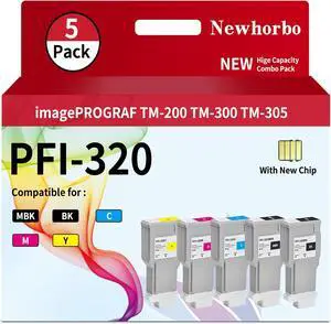 PFI320 Ink Cartridge Replacement for Canon imagePROGRAF TM200 TM205 TM300 TM305 Printer(Matte Black Black Cyan Magenta Yellow 5 Pack)