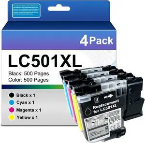 KANTEN High Capacity LC501XL Ink Cartridge (Black:500 Pages,Color:500 Pages) Compatible for MFC-J1260DW MFC-J1360DW MFC-J1410DW Printers -4Pack (Black Cyan Magenta and Yellow)