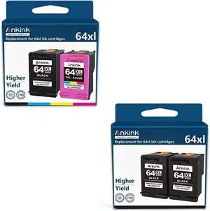 Ankink Higher Yield 64XL Black Color Combo Replacement for HP 64 XL Ink Cartridge HP64 HP64XL | Envy Photo 7855 7155 6255 7164 7830 7858 7800 6230 7120 Tango Ink X Printer Tricolor Black 4 Pack