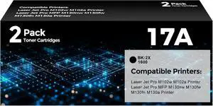 17A Black Toner Cartridge Compatible for HP CF217A Work with Laser Jet Pro M102w M130nw M130fw M130fn M102a M130a Pro MFP M130 M102 Printer (2-Pack)