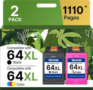 64XL Ink Cartridges Black/Color Combo Pack Replacement for HP Ink 64 for HP 64 Ink 64XL Work with HP Envy Photo 7855 7858 7155 7120 6252 6255 6258 7164 7864 Tango Tango X Printer (1 Black, 1 Color)