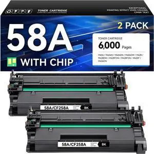 58A Toner Cartridge Black 2-Pack with Chip High Yield Replacement for HP 58A CF258A 58X Compatible with HP LaserJet Pro MFP M428dw M428fdn M428fdw M404dn M404dw M404n Enterprise M430f M406dn Printer