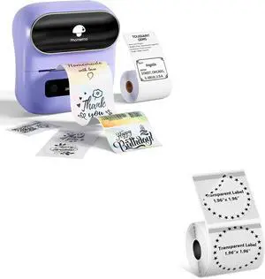 Phomemo M220 Label Maker Purple & 1 Roll Transparent Thermal Label 1.96"x1.18"(50x30mm), Upgrade 3 Inch Barcode Portable Printer, for Office & Small Business, Compatible with Phones&PC