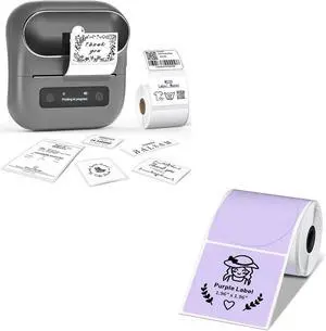 Phomemo M220 Label Maker & 1 Roll Thermal Round Purple + 1 Roll Labels, Label Makers Upgrade,3.14 Inch Portable Thermal Printer Support 20-80mm Width Label