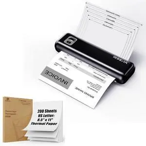 Aixiqee Inkless Portable Printer Wireless for Travel, 8.5" X 11" US Letter &Legal, Compatible with iOS, Bluetooth & USB, Thermal Paper Support A4&A5, Lightweight Wireless Printer for Home