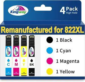 KINGWAY Remanufactured Ink Cartridges Replacement for 822 822XL Ink Cartridges Combo Pack for WF-3820 WF-3823 WF-4820 WF-4830 WF-4833 WF-4834 Printers (4 Pack)