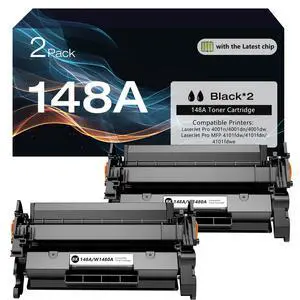 YATUNINK 148A Toner Cartridge (with Chip) Replacement for HP 148A Toner Cartridge 148A 148X Works with LaserJet Pro 4001n 4001dn 4001dw, MFP 4101fdw 4101fdn 4101fdwe (Black, 2-Pack)
