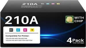 210A toner cartridges 4 Pack (with Chip) Replacement for HP 210A 210X toner cartridges Work with HP Color LaserJet Pro 4201dn 4201dw Pro MFP 4301dw 4301fdn 4301fdw Printers W2100A W2100X Toner (BCMY)