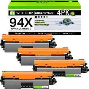 greencycle 4pk CF294X 94X Toner Cartridge Replacement Compatible for HP 94X Black Toner Cartridge Work with Laser Jet Pro M118dw MFP M148dw M148fdw M149fdw Printer Ink Cartridge(4PCS)