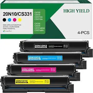20N10 High Yield Toner Cartridges 4-Color 20N10K0 20N10C0 20N10M0 20N10Y0 Toner Cartridge Set Replacement for Lexmark CS331dw CS431dw CX331adwe CX431adw CS331 CX331 Printer 20N10 Toner