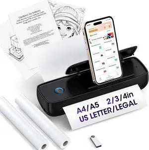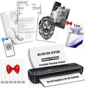 Portable Printer, Wireless Inkless Printers for Travel, Small Mobile Thermal Printer for 8.5" X 11" & A4 Thermal Paper, Bluetooth Compact Impresora Portátil for Phone, Laptop, Office Home use