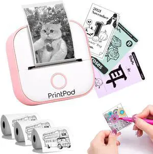 Wireless Photo Sticker Thermal Fast Printer, PrintPod Inkless Pocket Printer for DIY Scrapbook, 3 Pods (Pink)