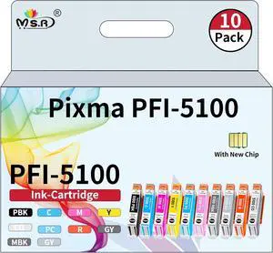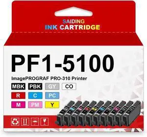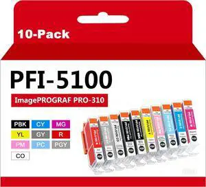 PFI-5100 Ink Cartridges - High Capacity Compatible for imagePROGRAF PRO-310 Printer, 10-Pack (MBK, PBK, C, M, Y, R, GY, PC, PM, CO)