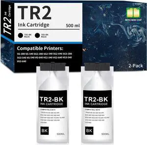 TR2 Black Ink Cartridge Replacement for Roland TrueVIS TR2 TR2-BK Ink for TrueVIS SG-300 540, SG2-300 540 640, SG3-300 540, VG-540 640, VG2-540 640, VG3-540 640 Printer Ink (2-Pack, 500ml)