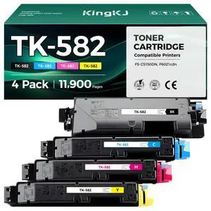 TK-582 TK582 Toner Cartridge Set 4-Pack High Yield Replacement for Kyocera TK-582K TK-582M TK-582C TK-582Y Ink Compatible with Kyocera ECOSYS P6021cdn PRINTER FS-C5150DN Printer Copy Black Color Cyan