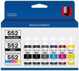 JETSIR 552 Ink Bottles 6 Pack ET-8550 ET-8500 Replacement for 552 Ink Refill Bottle Work for Photo ET 8550 ET8550 Photo ET 8500 ET8500 8550 8500 Printers (BK PB C M Y GY)