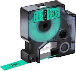 NineLeaf 40 PK Compatible for Dymo D1 45019 S0720590 Label Tape 12mm 1/2 Inch Black on Green Refill Tape for LabelManager 160 280 360D PnP 500TS LabelWriter 450 Duo COLORPOP Label Maker