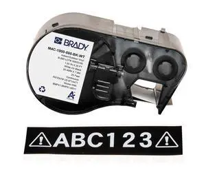 Brady Authentic (M4C-1000-595-BK-WT) All-Weather Vinyl Labels 1 in W x 25ft White on Black. for use with BMP41, BMP51, M410, M510, and M511 Label Printers.