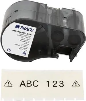 Brady Authentic (M5C-1500-595-CL-BK) All-Weather Permanent Adhesive Vinyl Labels 1.5 in W x 20ft Black on Clear. for use with BMP51, M510, and M511 Label Printers.