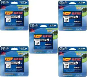 Brother Genuine P-touch, TZE2312PK, 1/2" (0.47") Standard Laminated P-Touch Tape, Black on White, Laminated for Indoor or Outdoor Use, Water Resistant, 26.2 Feet (8M), 10 Tapes