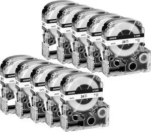 10 PK AZe 24mm 0.94" Laminated Clear Tape Compatible for Ptouch TZ-S151 TZe-S151 TZe-151 AZe-151 1" Extra Strength Label Tape for PT-D600 D600VP D610BT D800W E500 Label Maker, Black on Clear
