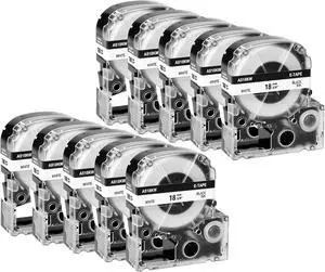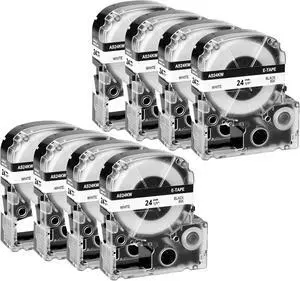 NineLeaf 8 Pack Compatible for LabelWorks Label Maker Tape LK-6WBN LC-6WBN LC-6WBN9 SS24KW 24mm 1 Inch Black on White 0.7 Label Tape Work for LabelWorks LW600P LW700 LW900P LW1000P Label Maker