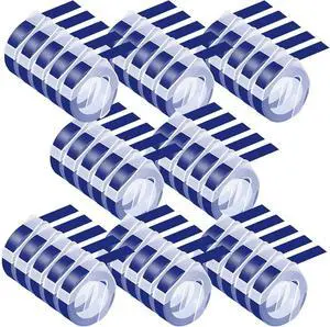 30 Pack Compatible for Dymo 521206 12mm 3D Plastic Embossing Label Tape 1/2'' Blue on White Emboss Labels for Organizer Xpress 1575 1595 1570 Office Mate MoTEX Label Makers