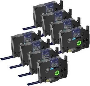 8 Pack Compatible for Ptouch TZe-RN34 TZ-RN34 Satin Ribbon TZe TZ Tape 12mm 0.47" Gold on Navy Embellish Fabric Label Maker Tape for PT-2500PC PT-2600 PT-2610 PT-2700 PT-2710