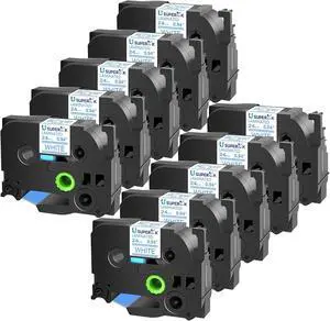GREENCYCLE 10 Pack Compatible for Brother TZe-221 TZ-221 9mm 0.35" Laminated White Label Maker Tape Ptouch TZe221 TZ221 TZe TZ Label Tape for PT-D400VP PT-D450 PT-D600VP PT-P750W PT-1280