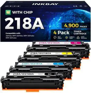 218A Toner Cartridges 4 Pack 3301sdw (with Chip) Compatible with HP 218 218A 218X Cartridges for Color Laserjet Pro MFP 3301fdw 3301cdw 3201dw 3301sdw 3301 Printer Ink W2180A W2180X(BCYM,4-Pack)