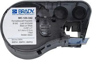 Brady - 143223 MC-125-342 Polyolefin B-342 Black on White Label Maker Cartridge, 7' Width x 15/64" Height, For BMP51/BMP53 Printers