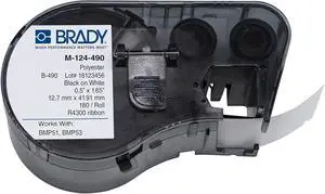 Brady M-124-490 Polyester B-490 Black on White Label Maker Cartridge, 1-41/64" Width x 1/2" Height, For BMP51/BMP53 Printers