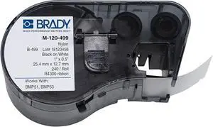 Brady M-120-499 Nylon Cloth B-499 Black on White Label Maker Cartridge with 7/16" Top Vial Diameter, 1" Width x 1/2" Height, For BMP51/BMP53 Printers