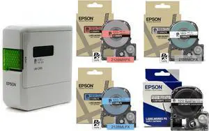 LABELWORKS Epson LW-C410PX Elementary School Bundle Label Maker and White, Red, Blue & Magnet Tapes - LW-C410PX, 212BMLPX, 212BMRPX, 212MTBWPX-4.9, 218BMCPX
