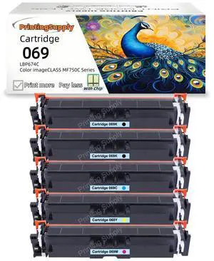 5 Pack 069 2BK+CMY Toner Cartridge With Chip Compatible for Canon 069 imageCLASS MF752Cdw imageCLASS MF753Cdw MF751Cdw MF756Cx LBP673Cdw LBP674Cx LBP674Cdw