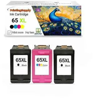 3 Pack 65XL Remanufactured Ink Cartridge Replacement for HP Ink 65 XL2 Black 1 Color Combo HP65 XL,5055 5000 5052 5010 5070 5014 3755 3700 3772 2600 3752 2652 2655 2622 2640 Printer,BK Tricolor