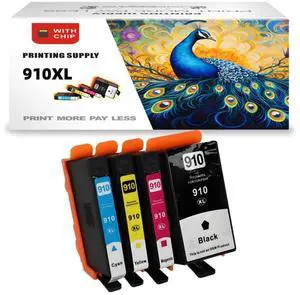 910 XL Ink Cartridge Compatible for HP 910XL, Fits for HP Officejet 8010 8012 8013 8015 8020 8022 OfficeJet Pro 8020 8021 8022 8023 8024 8025 8026 8028 8030 8035, 4 Pack Black/Cyan/Magenta/Yellow