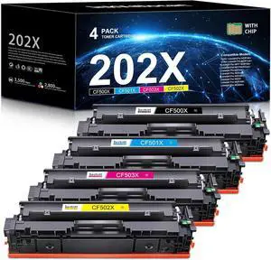 202X High Yield Toner Cartridges 4-Pack | Replacement for HP 202X CF500X CF501X CF502X CF503X for Color LaserJet Pro MFP M281fdw M281fdn M281cdw M281 M254dw M254nw M254dn Printer