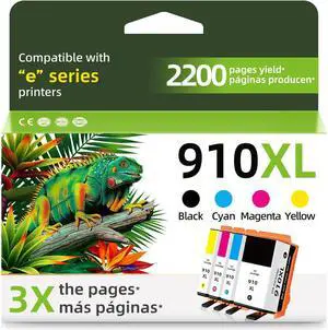910XL Ink Cartridges Black Color Combo Pack for HP 910 XL Compatible for HP910 OfficeJet Pro 8020 8015e HP910XL for 8025e 8028e 8020e 8025 8010 8028 8035 8015 8022 Printer Cyan Magenta Yellow 4-Pack