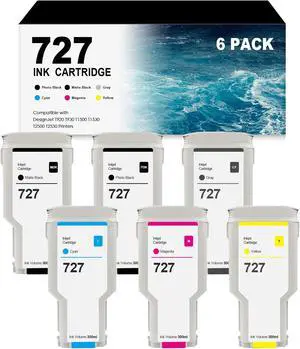 727 Ink Cartridges 300ml (6 Pack, PBK MBK G C M Y) Replacement for HP 727 C1Q12A F9J79A F9J76A F9J77A F9J78A F9J80A Compatible with DesignJet T920 T930 T1500 T1530 T2500 T2530 Printer