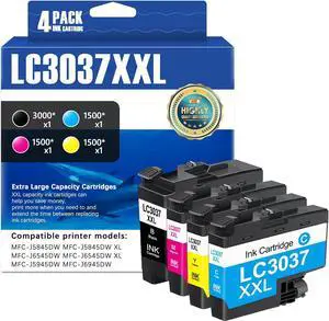 LC3037 BK/C/M/Y Ink Cartridge (4-Pack) - Replacement for Brother LC3037XXL LC3037 XXL LC3037BK Super High-Yield Ink Cartridge Compatible with MFC-J5845DW MFC-J6945DW MFC-J6545DW MFC-J5945DW Printers