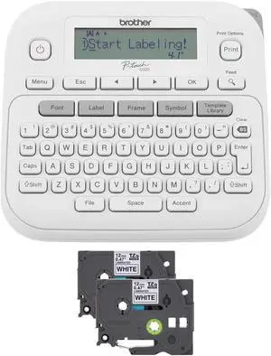 Brother PTD220 Home/Office Everyday Label Maker Bundle with TZe2312PK P-Touch Black Print on White Laminated Label Tape