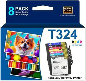 T324 Ink Cartridges GO,PB,C,M,Y,R,MB,O Remanufactured High Yield 324 Ink UltraChrome T3240 T3241 T3242 T3243 T3244 T3247 T3248 T3249 Replacement for SureColor P400 Printer,8 Packs